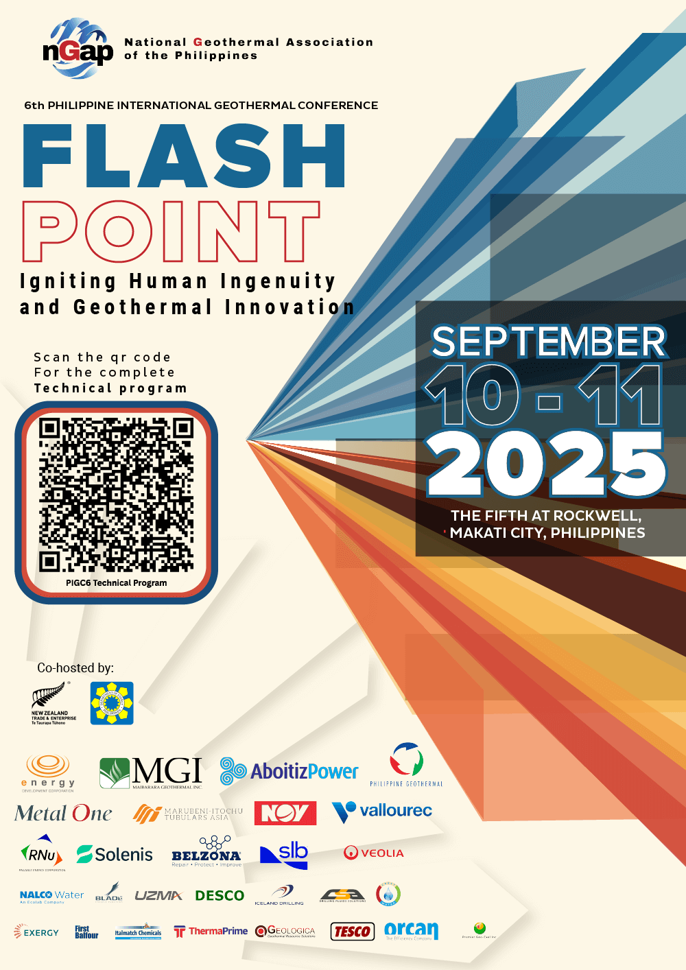 The National Geothermal Association of the Philippines (NGAP) proudly announces the 6th Philippine International Geothermal Conference (6th PIGC) — the premier gathering for geothermal professionals, researchers, policymakers, and energy stakeholders in the region!